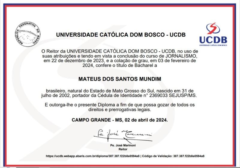 Diploma de Jornalismo